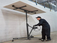 Designed for easy lifting and installation of drywall panels. It allows for one-person operation and features a hoist that tilts for both ceilings and walls, making it ideal for various applications in home and commercial settings.